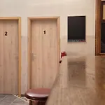 We wspólnej łazience znajdują się prysznic, a w niektórych pokojach dodatkowo są szafka.